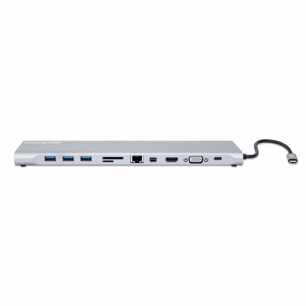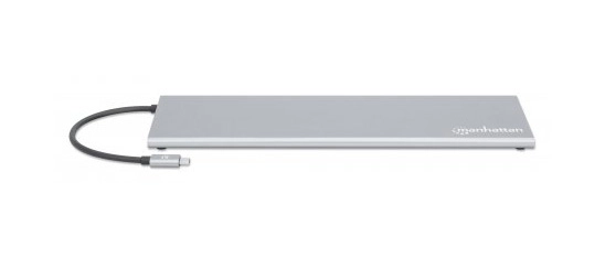 130578 docking station usb-c - 11 en 1 con mst para tres monitores, aluminio, gris