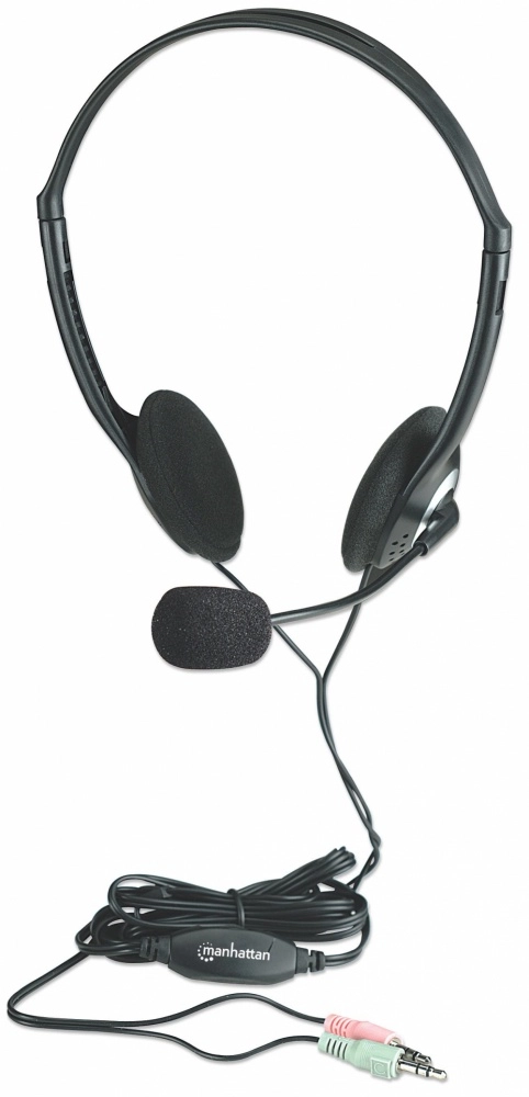 164429 diadema ajustable con micrófono y control de volumen - cable 1.8 m, garantia de 3 años.