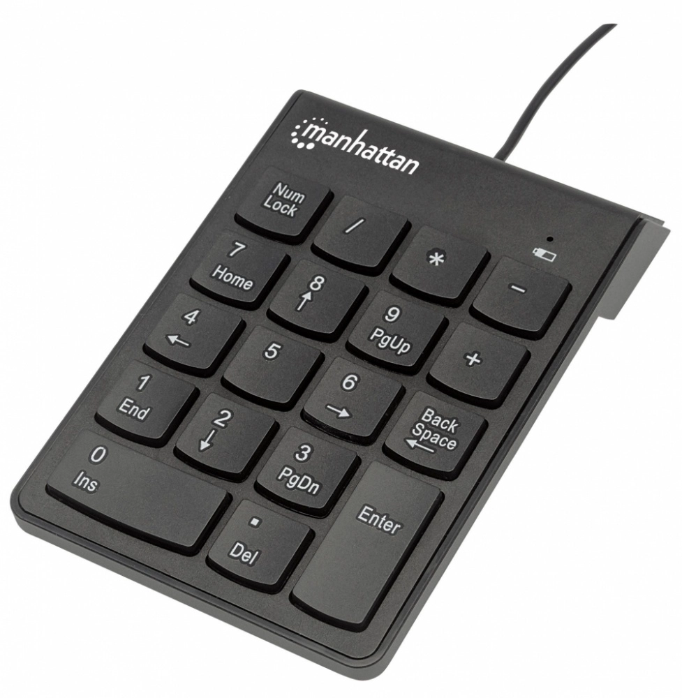 176354 teclado numérico alámbrico usb - 18 teclas del mismo tamaño incluye tecla de retroceso color negro.