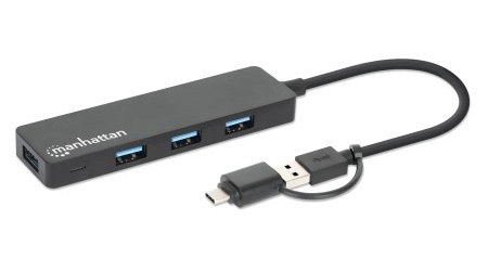 180863 hub de interfaz usb a + tipo-c a puertos usb a negro
