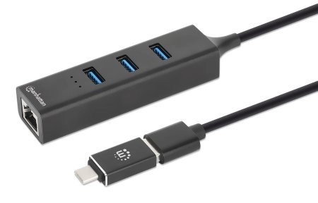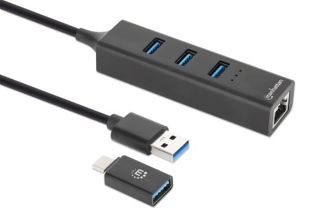 180894 adaptador usb-a macho con acoplador usb-c macho a conector rj-45 hembra y tres conectores usb-a de 5 gbps de súper velocidad (usb 3.2 gen1) - aliment