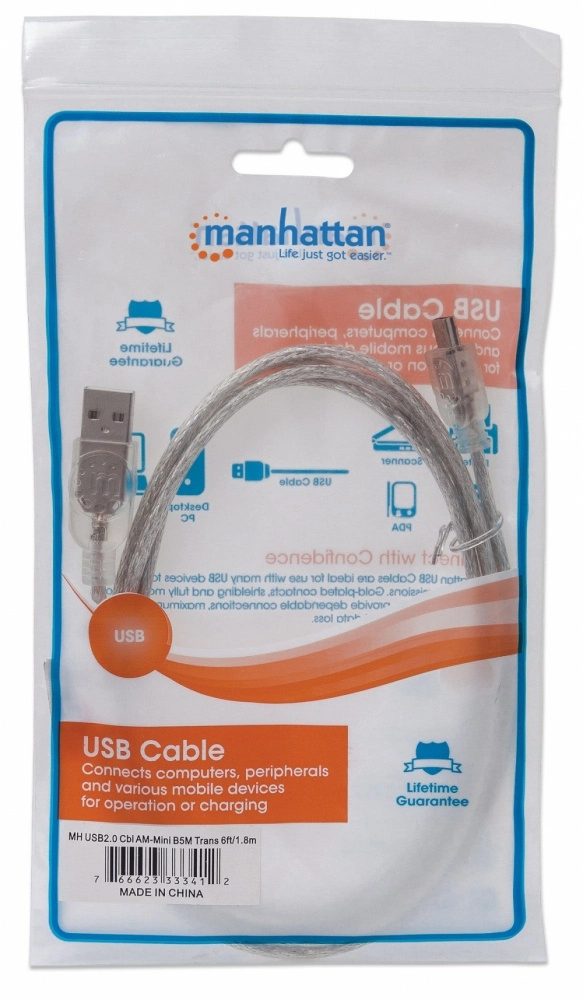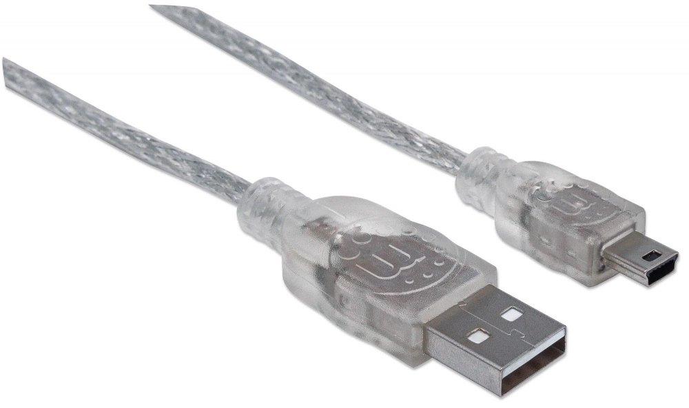 333412 cable usb 2.0 - a macho a mini-b macho, 480 mbps, 1.8 m, plateado translúcido