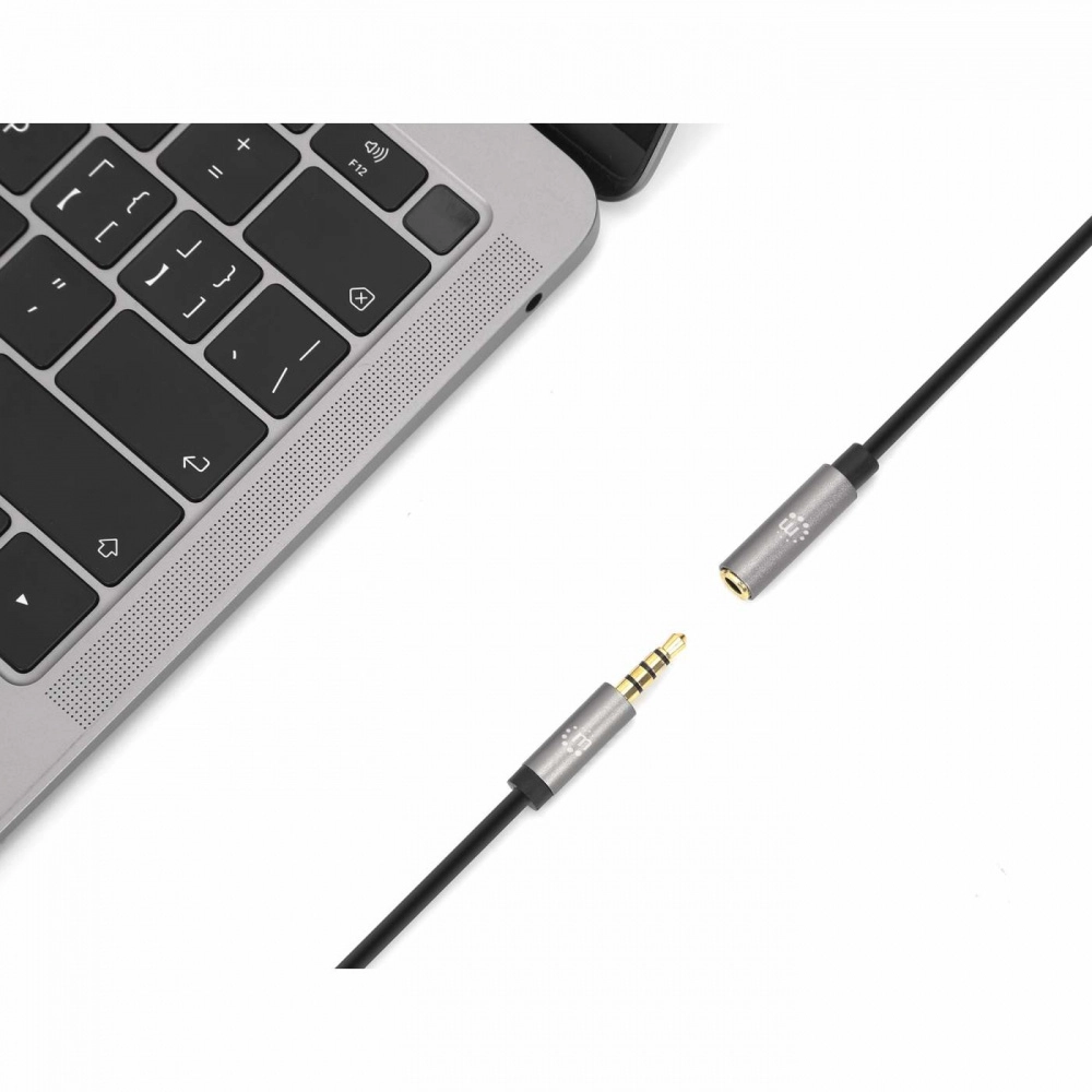 356039 extensión de cable auxiliar de audio estéreo de 3.5 mm macho a 3.5 mm hembra - 2 m, contactos chapados en oro, diseño delgado, negro/plata