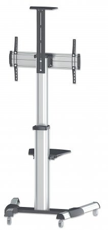 461245 soporte de aluminio tipo carrito para tv de 37 pulgadas a 86 pulgadas inclinación de -12 a 5° - rotación de tv de 90°;repisas removibles.