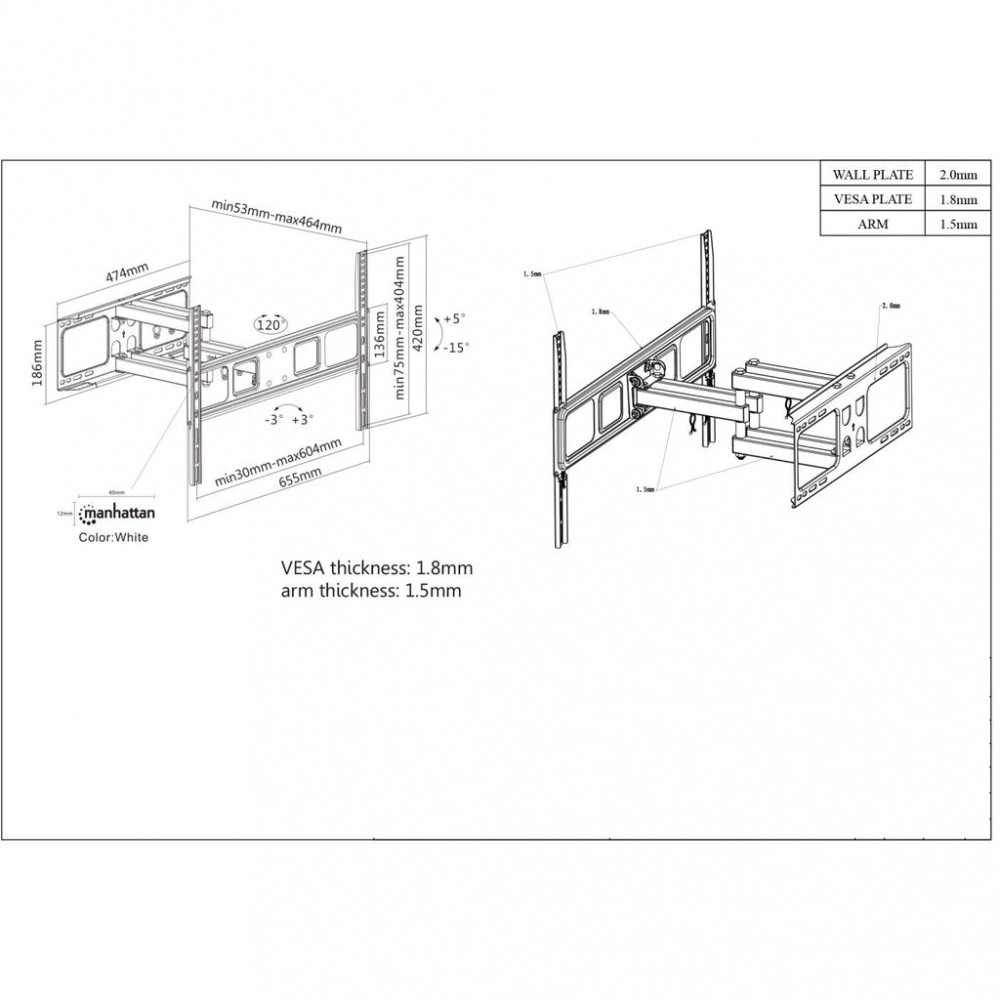 461351 soporte universal de pared para tv - con movimiento completo, básico soporta una tv de pantalla plana o curva de 37 a 70" de hasta 40 kg