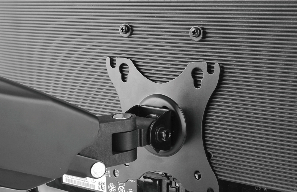Cinco estrellas. soporte de aluminio con pistones de gas para dos monitores: los brazos articulados sujetan dos monitores de 17 pulgadas a 32 pulgadas de hasta 9 k va perfecto y se siente premium. La configuración tomó minutos. Se integró sin complicaciones con el resto del equipo.