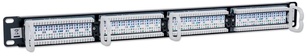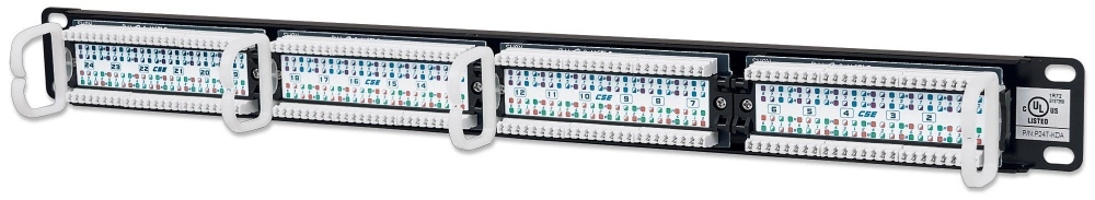 513555 panel de parcheo cat5e 24 ptos 1u; compatible con herramientas de ponchado - soporta cable trenzado sólido y multifilar de calibres 22 y 26 awg