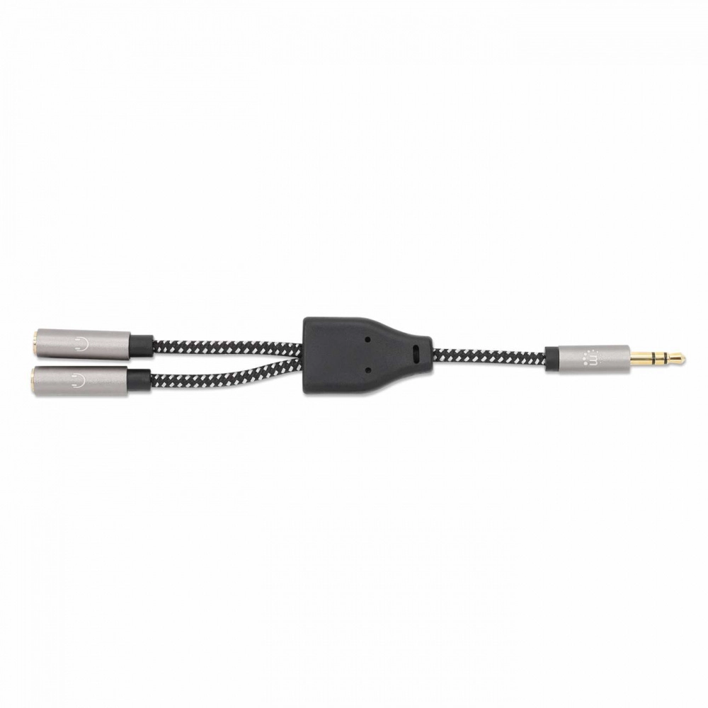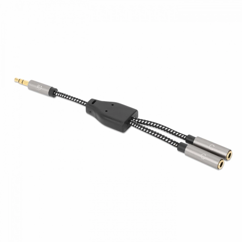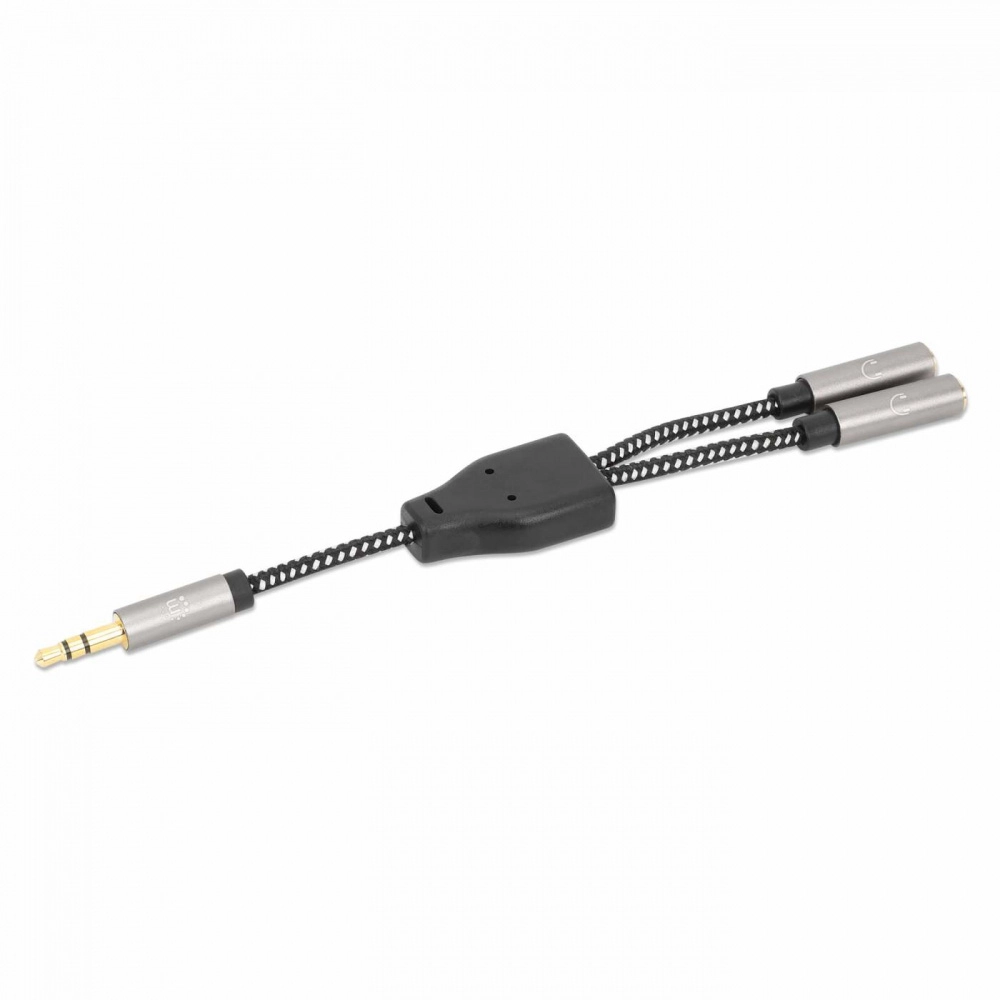 Adaptador de auriculares en y manhattan 356114 - 3.5 mm, negro/plata, 15 cm