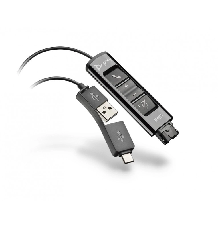 Adaptador qd hp poly da85 786c7aa/ adaptador digitales qd usb-a y usb-c, botones de volumen, mute , llamada y pausa color negro