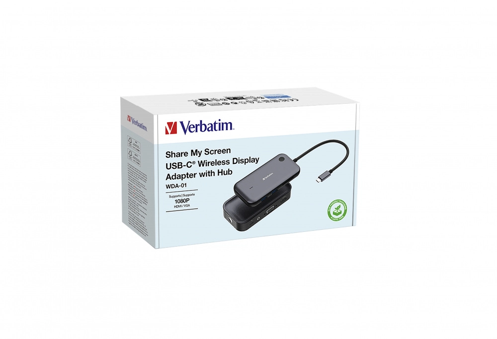Adaptador verbatim inalámbrico usb-c con lector de tarjetas qcast mirror wda-01