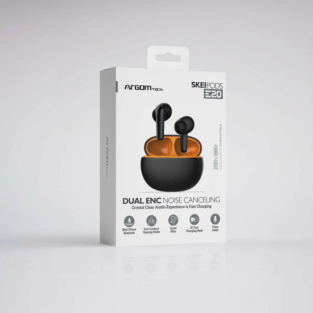 Audifonos argomtech inalámbricos skeipods e20 control táctil resistente al agua color negro