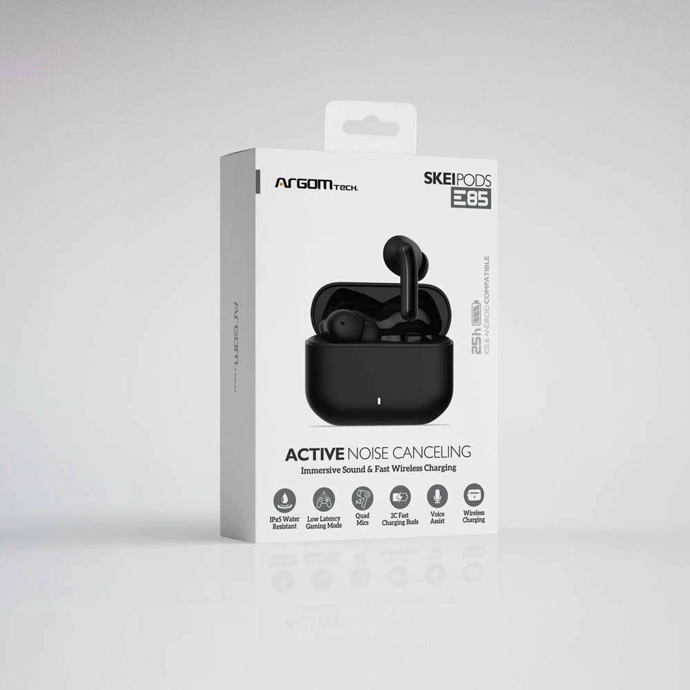Audifonos argomtech inalámbricos skeipods e85 control táctil resistente al agua carga rápida bluetooth 5.3 color negro