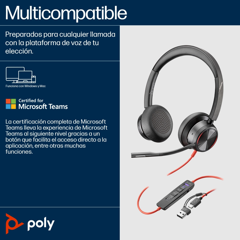 Auricular bluetooth plantronics poly blackwire 8225 8x223aa