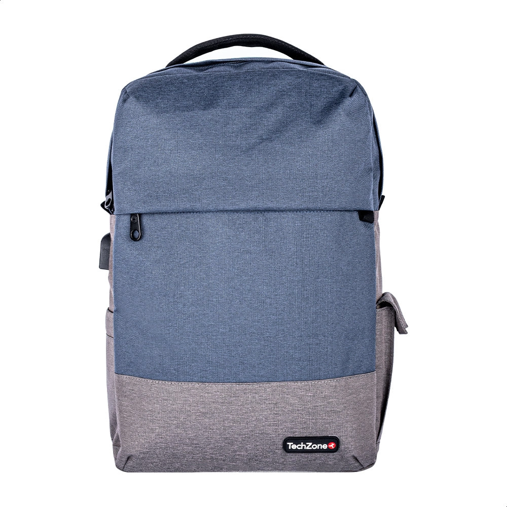 Backpack strong blue techzone - de 15.6 pulgadas, múltiples compartimientos, organizador frontal, costuras y asas reforzadas, garantía limitada de por vida.