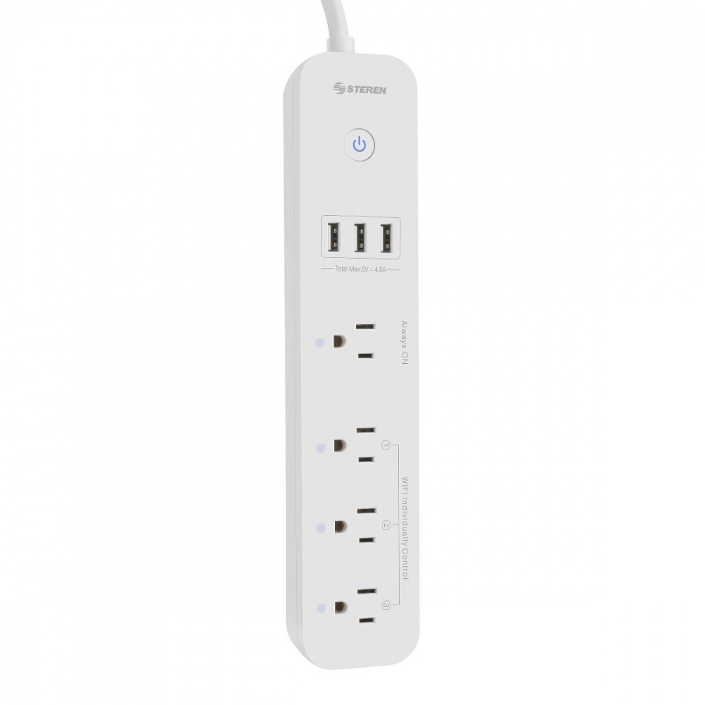 Barra steren multicontacto wi-fi de 4 salidas horizontales y triple cargador usb color blanco