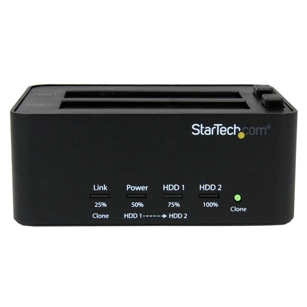 Base duplicadora autonoma de 2 bahías usb 3.0 de discos duros hdd sata 2.5