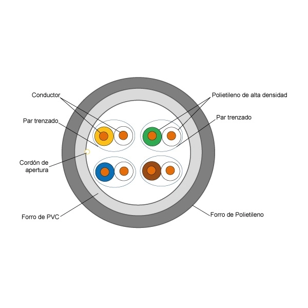 Bobina de cable xcase doble forro, utp para exteriores categoria 5e, 0.45mm, 305mts gris