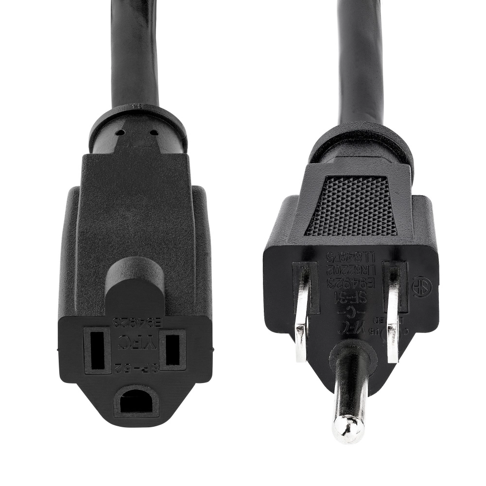 Cable 4.5m (15 pies) de extensión de servicio pesado, cable de extensión nema 5-15p a nema 5-15r, 15a 125v, 14awg, cable extensor alargador de corriente, negro startech