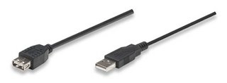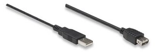 Cable de extensión usb2.0 de alta velocidad (338653) manhattan usb 2-0 a macho / a hembra - 480 mbps, 1.8m. color negro