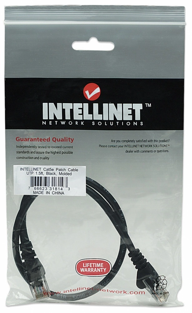 Cable de red intellinet 318143 cat5e - 0, 45 m, rj-45, rj-45, macho/macho, negro