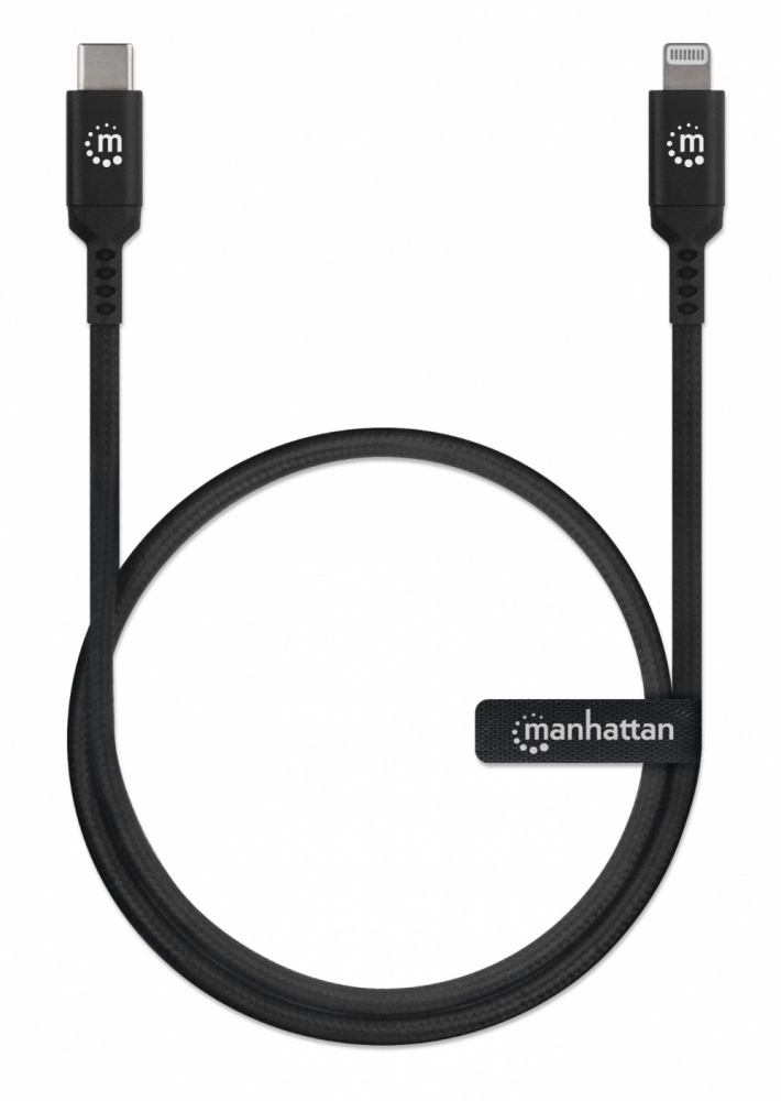 Cable lightning a usb-c 0.5m manhattan 394192 - usb-c, lightning, negro, 0.5 m