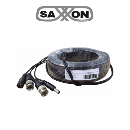 Cable saxxon wb0130c, conectores bnc y plug de energia para camara de vigilancia 30 mts, color negro