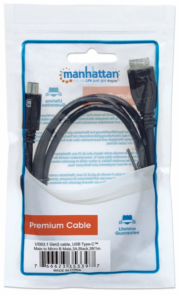 Cable usb,manhattan,353397,-c v3.1, c-micro b 1.0m negro