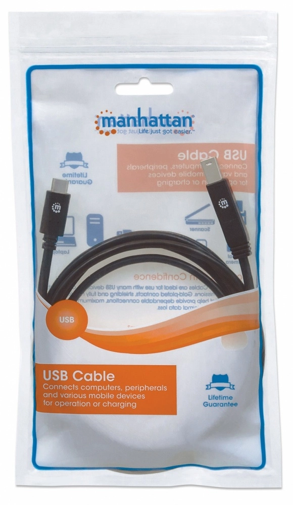 Cable usb,manhattan,354998,-c v3.1, c-b 2.0m negro