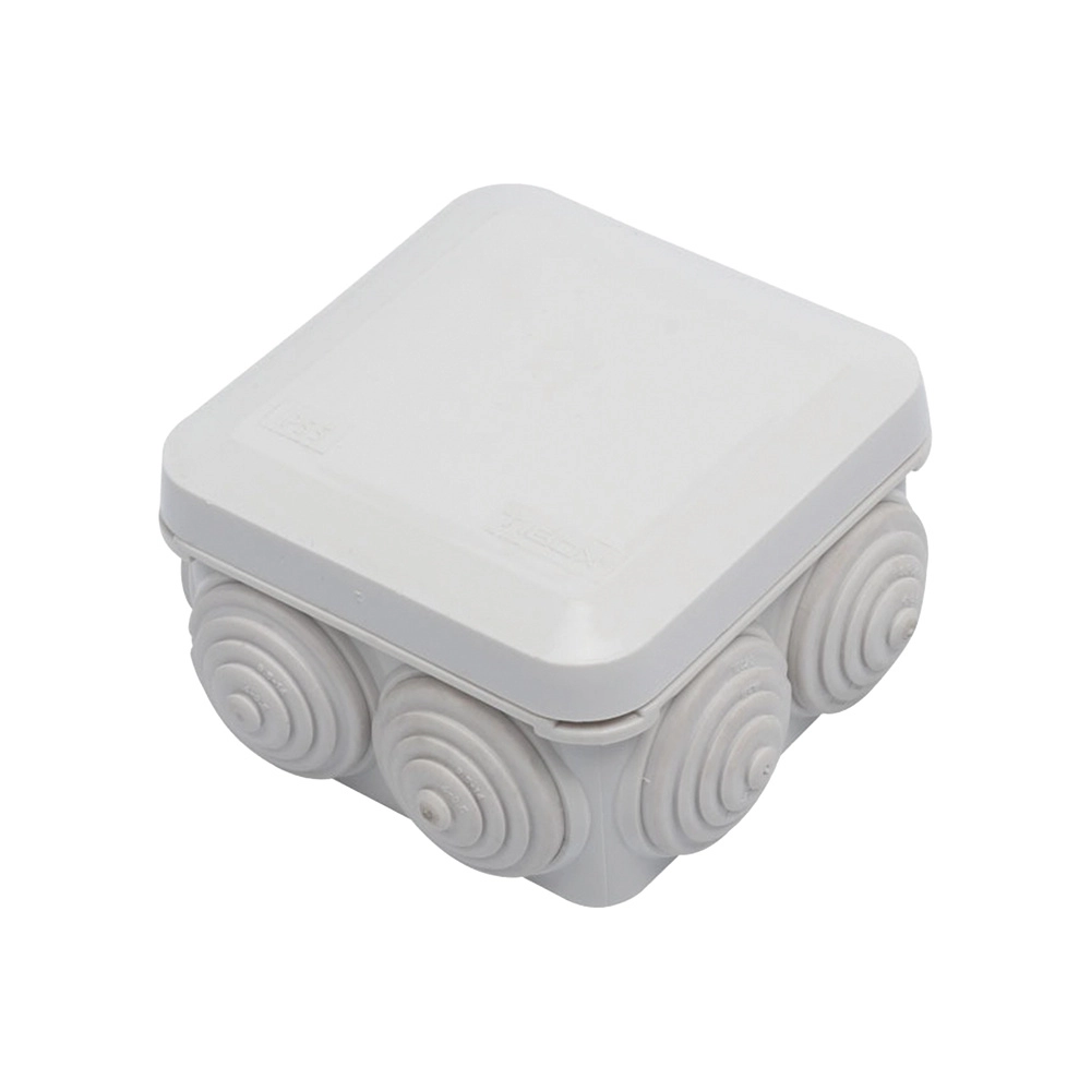 Caja derivación-conexión de plástico (89 x 89 x 50 mm) con 7 glándulas de goma. para instalaciones comerciales, residenciales e industriales. cerrado a presión.