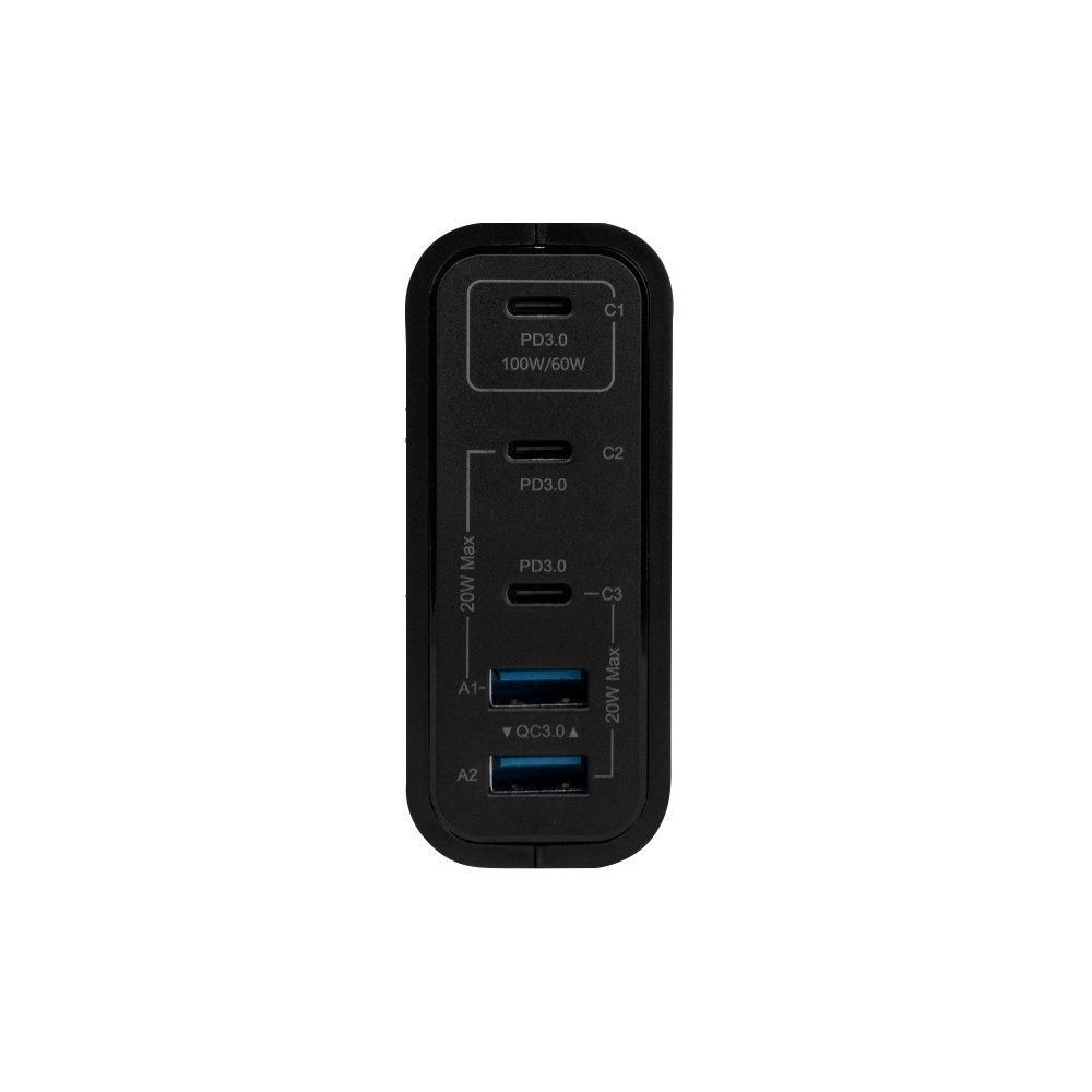 Cargador de pared vorago au-600 tipo c 100w pd 5 puertos quick charge 3.0 negro
