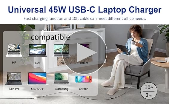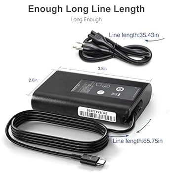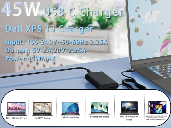 Cargador original para laptop dell, 45w, usb tipo c, 100v-240v, negro