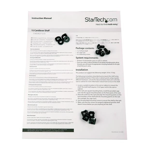 Charola estante de 1u para gabinete rack de servidores - de 10 pulgadas de profundidad - startech.com mod entrega lo prometido; con una actualización sería perfecto. La entrega fue oportuna. Podría traer mejores instrucciones, pero se entiende.