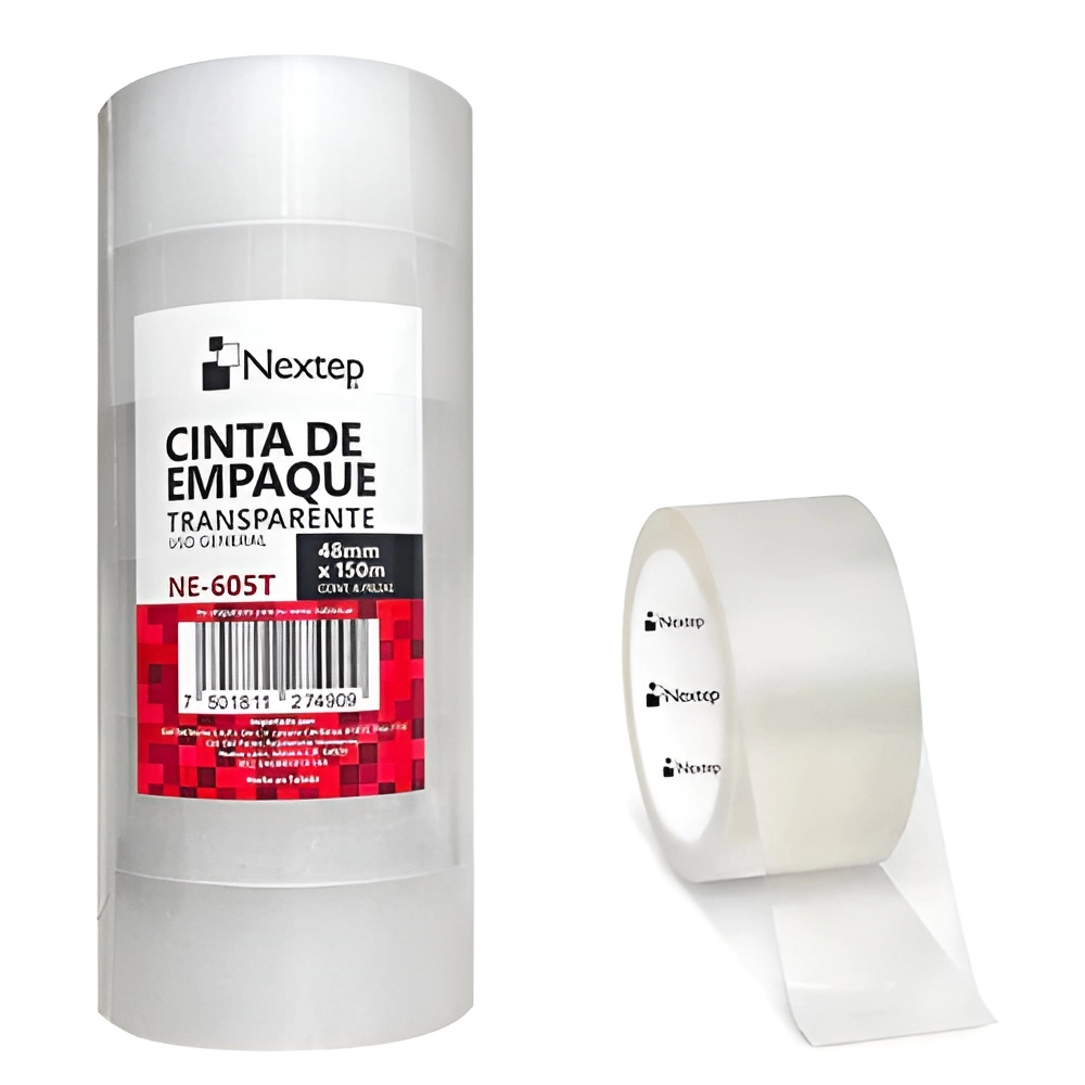 Cinta de empaque transparente nextep ne-605t uso general 48mm x 150mm con 6 piezas