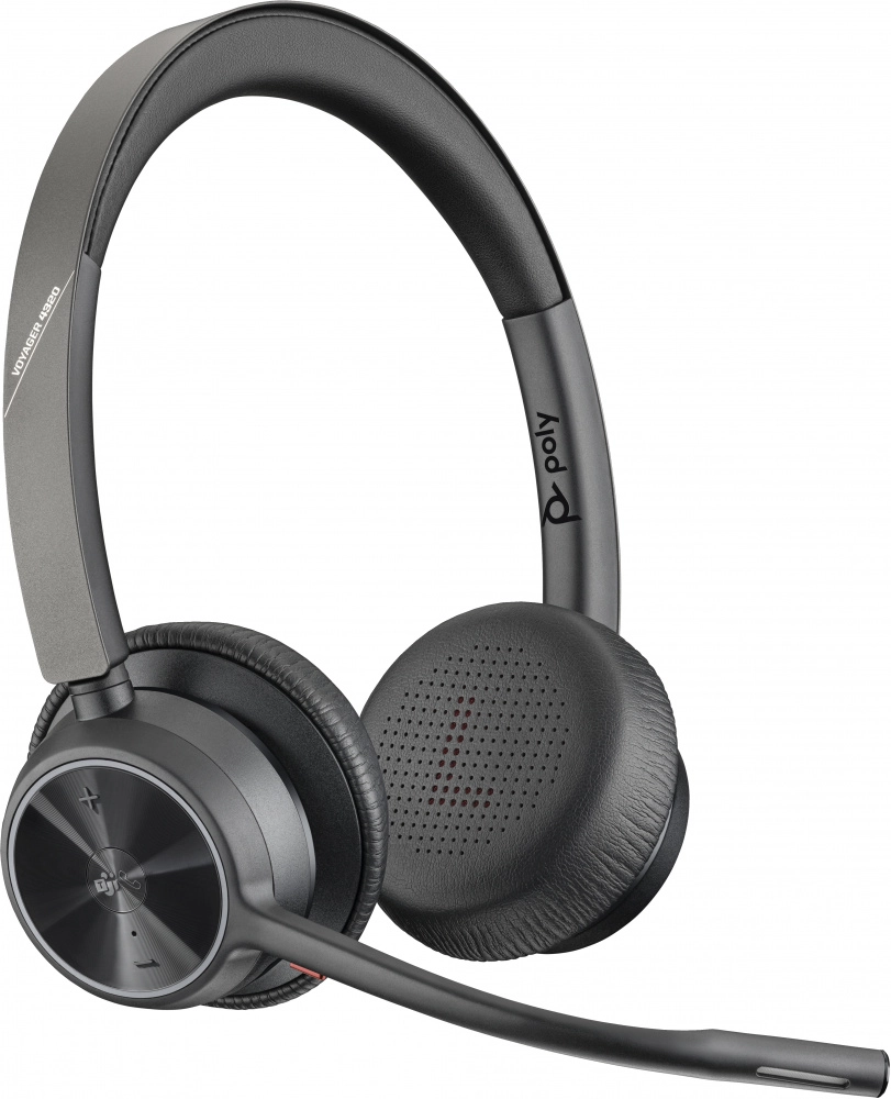 Diadema hp poly 77z00aa / audífonos con micrófono voyager 4320 ms con base, bluetooth, inalámbrico, negro