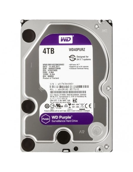 Disco duro interno wd 4tb 3.5" wd40purz 64mb sata3 5400rpm purple