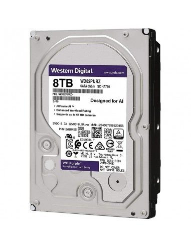 Disco duro interno wd 8tb 3.5" wd82purz 256mb sata3 7200rpm purple