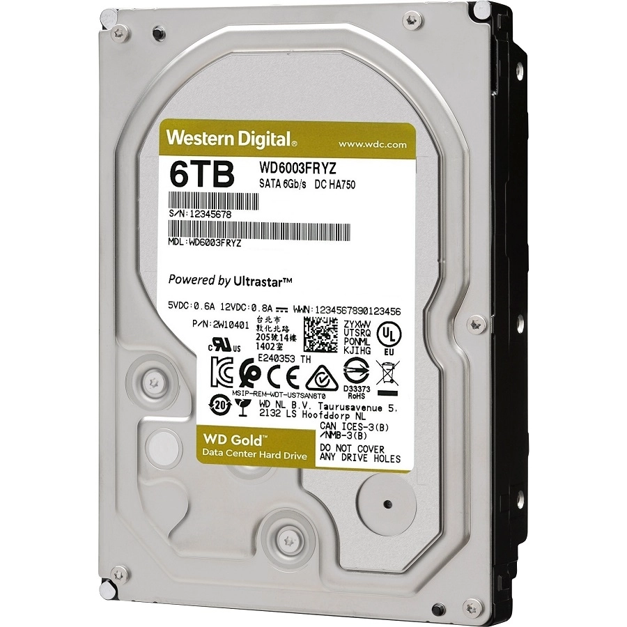 Disco duro interno wd gold 6tb 3.5 escritorio sata3 6gb/s 256mb 7200rpm 24x7 hotplug nas dvr nvr server datacenter wd6003fryz