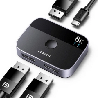 Divisor de video ugreen displayport, 2x displayport, 7680x4320 8k. negro