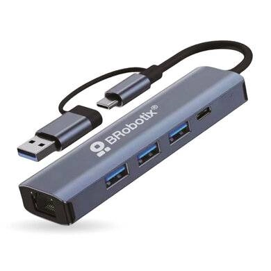 Docking 5 en 2 conector dual usb a y tipo c a 3 puertos usb v3.0 - 1 puerto usb tipo c y rj45 gigabit, brobotix 406603