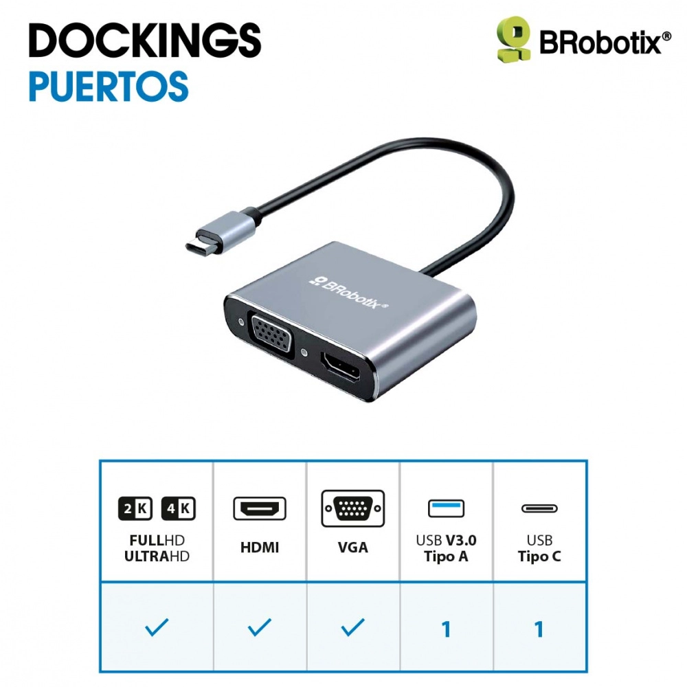 Docking station usb c - 4 en 1, hdmi/usb a/usb c/vga. brobotix 6000687
