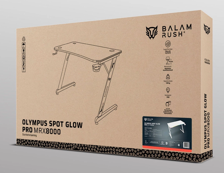Escritorio balam rush olympus spot glow pro mrx8000 / ergonomico / estructura z / diseño gamer / rgb / blanco / br-941389
