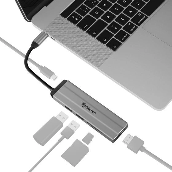 Estación de conexión steren usb c 6 en 1 color negro