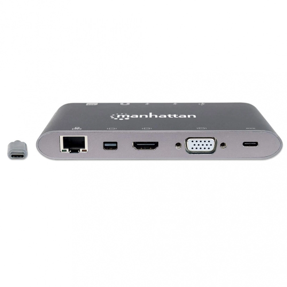 Estación docking usb-c supervelocidad 7 en 1 manhattan supervelocidad 7 en 1 - gris, usb c, usb c, usb3.0/hdmi/vga, macho/hembra