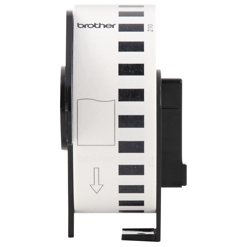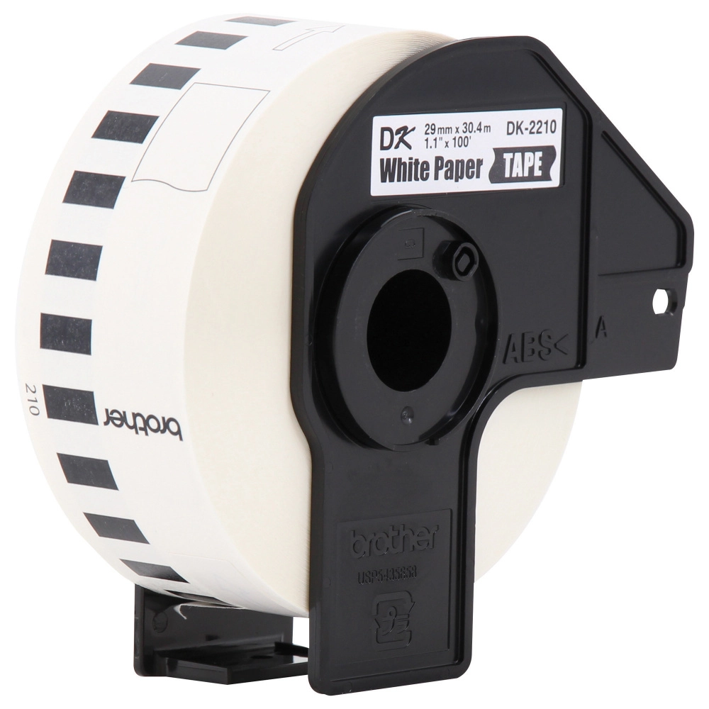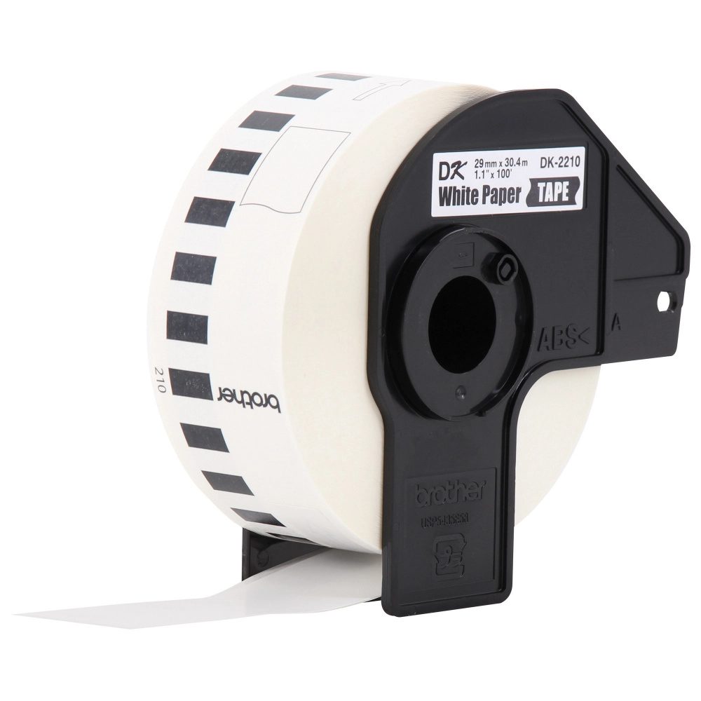 Etiqueta blanca continua de papel brother dk2210 de 29 mm de ancho x 30.4 mts de largo. impresión en negro. ql800 / ql810w / ql1110nwb.