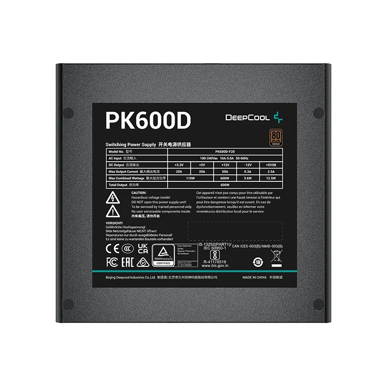 Fuente de poder deepcool pk600d (r-pk600d-ha0b-us) - color negro, 600w 80+ bronce, no modular.