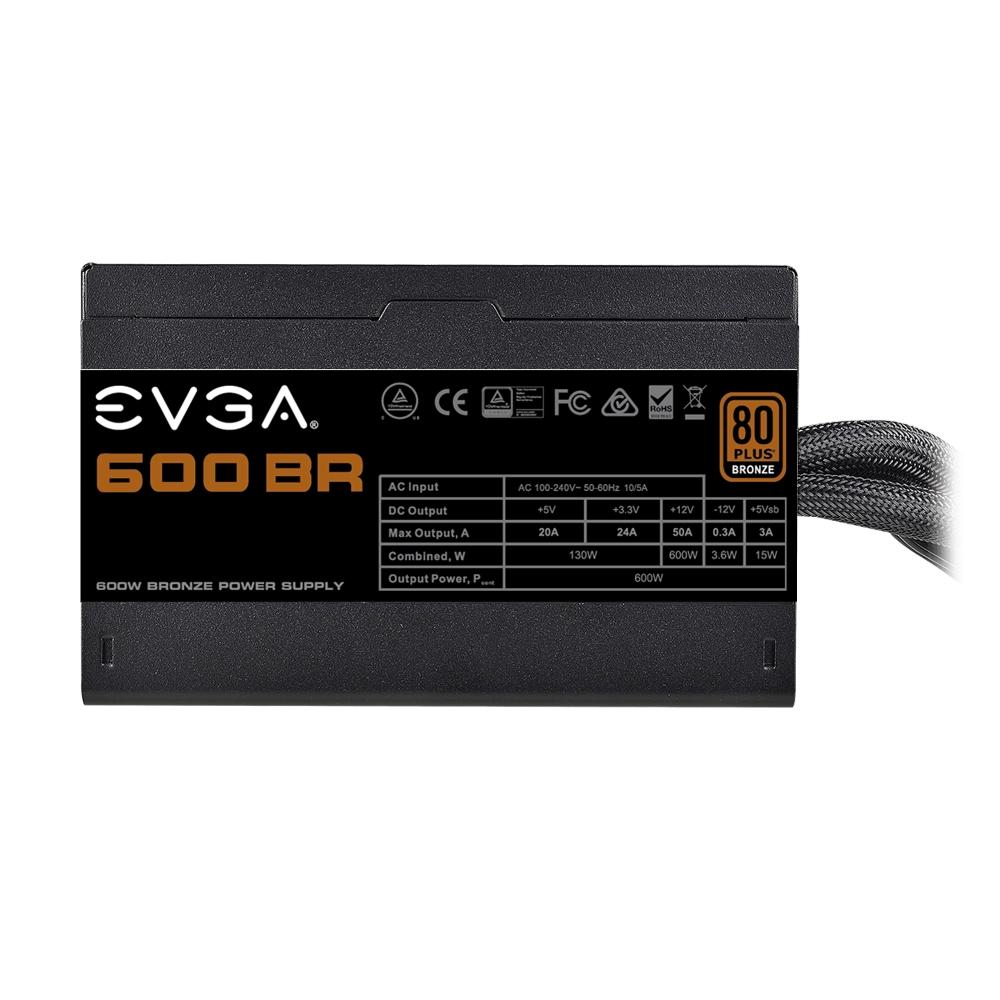 Fuente de poder evga br 600w 80 plus bronze atx 12v 24 pin fan 120mm negro