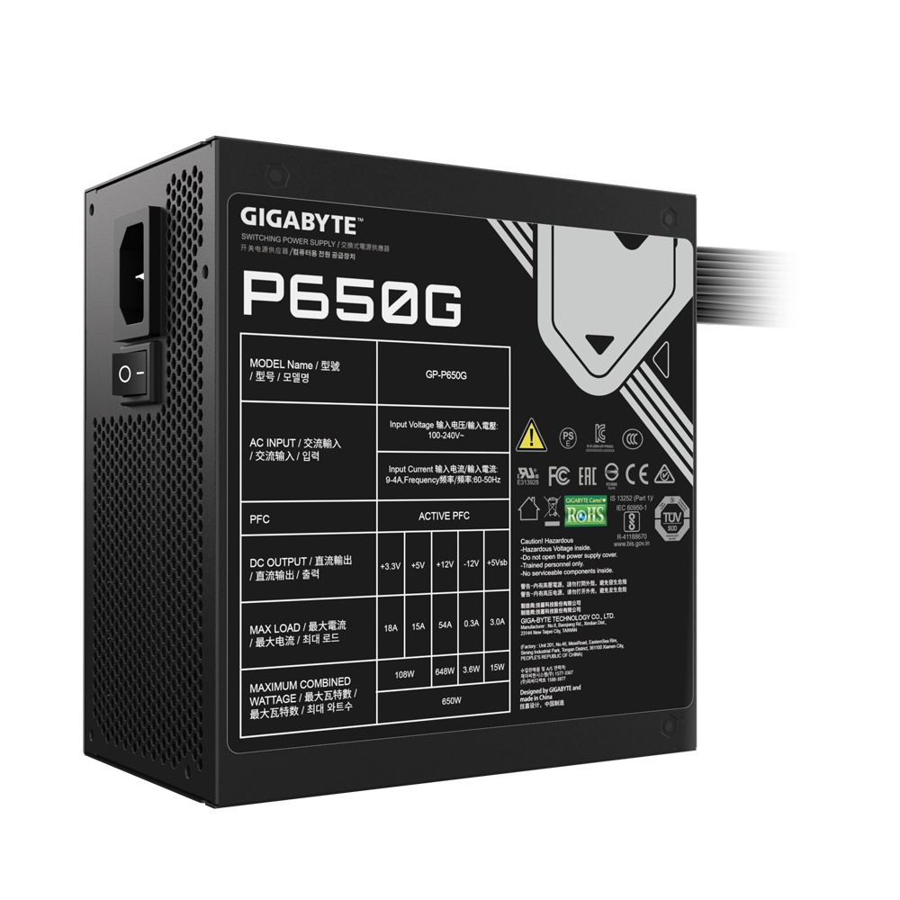 Fuente de poder gigabyte gp-p650g 650w atx 12v 80 plus gold 20+4 pin fan 120mm negro