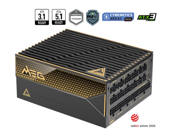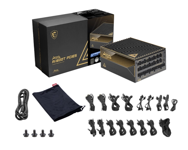 Fuente de poder msi (meg ai1600t pcie5) 1600w, pci 5.1, full modular, 80 plus titanium, pfc, atx 3.1