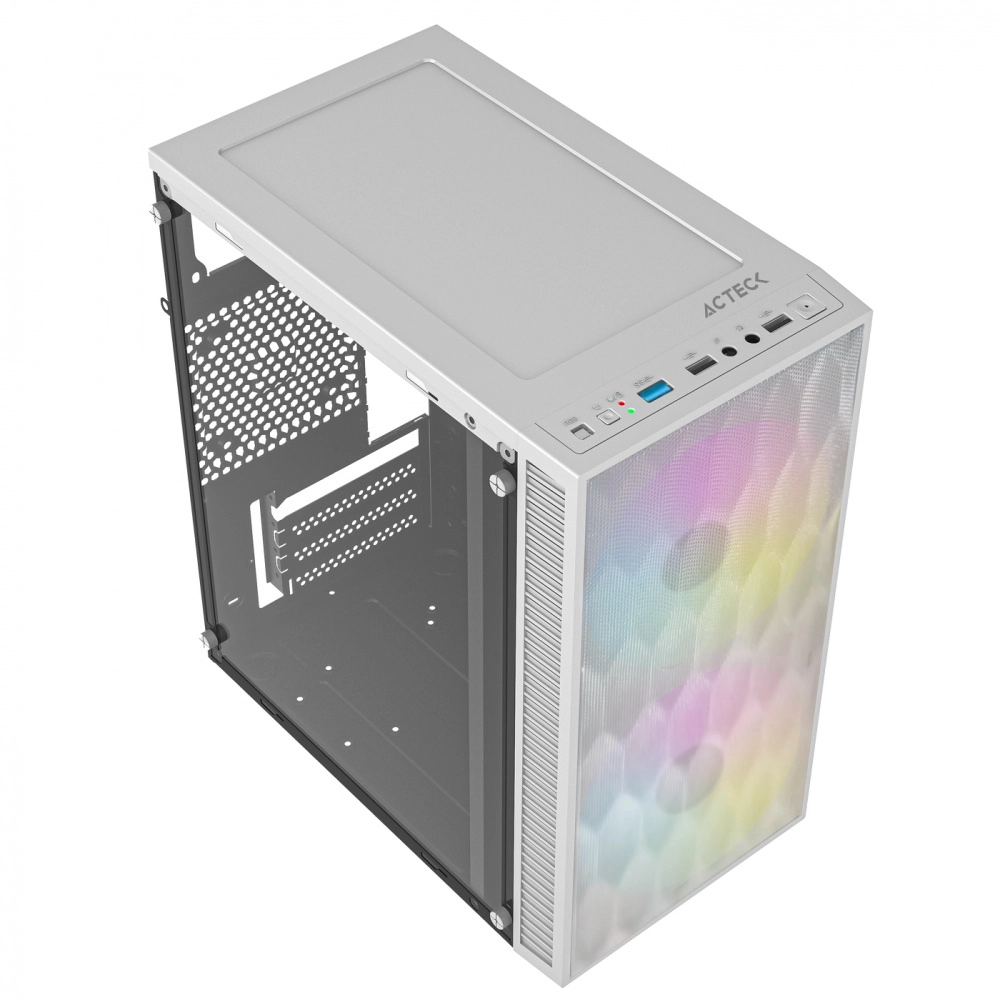 Gabinete acteck fuji gc470 / mini torre / micro atx , mini itx / fuente 500w / incluye 2 ventiladores 120 mm / panel izq acrilico + frente mesh / blanco / ac-939515