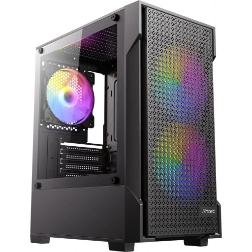 Gabinete antec vx100m argb, mini tower, micro atx, itx, 3x ventiladores argb 120mm, negro